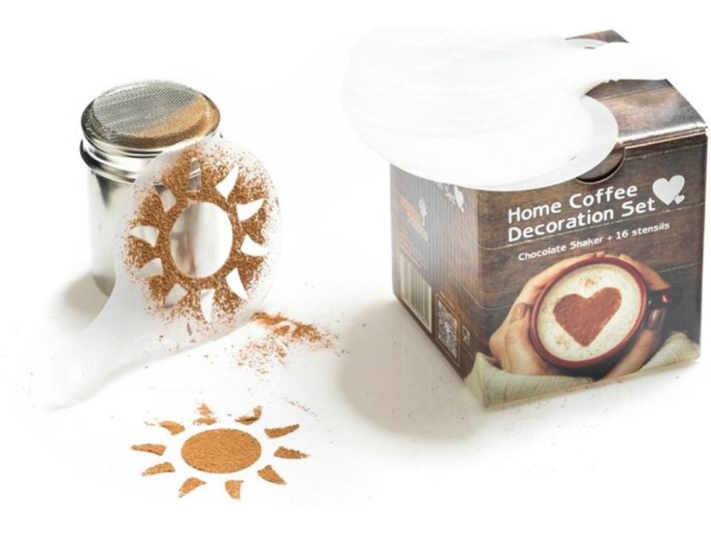Není nad to dopřát si příjemný odpočinek u šálku kávy. Představte si, že nyní si můžete chvíli u kávy zpříjemnit roztomilými obrazci na kávě. Nabízíme Vám šablony na kávu 16 ks/sada se zdobícím sítkem. Díky této sadě můžete vykouzlit na kávě spoustu krásných obrazců, kterým můžete potěšit například návštěvu, nebo svou drahou polovičku. Díky těmto šablonám bude káva chutnat o mnoho lépe. Představte si, že donesete své lásce kávu do postele s milým smajlíkem nebo srdíčkem. Pomocí šablonek a sítka můžete na kávě vytvořit různé obrázky a sdělit tak své pocity. Šablony na kávu 16 ks/sada se zdobícím sítkem jsou originálním dárkem pro milovníky kávy.