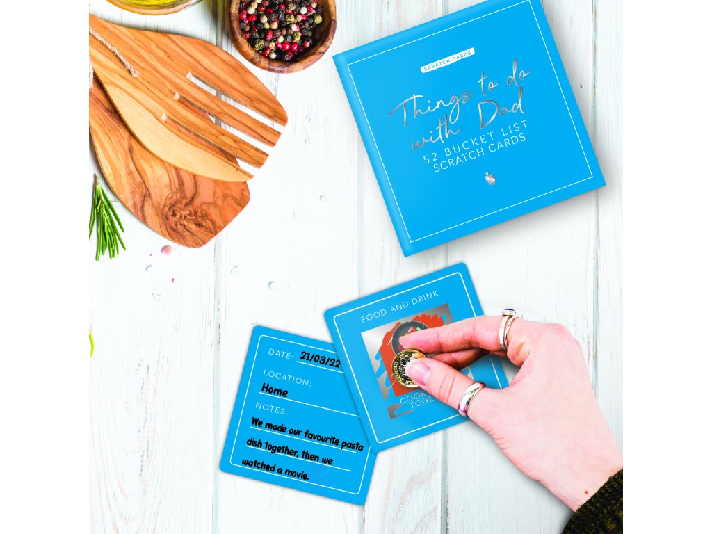 _ Description: Document time with your dad with these scratch cards! Filled with 52 things for you to share and enjoy together. Scratch off the panel on each card to reveal your activity! Dims: 11.5x11.5x3cm Product Info: 52 cards includedDoplňkové parametry