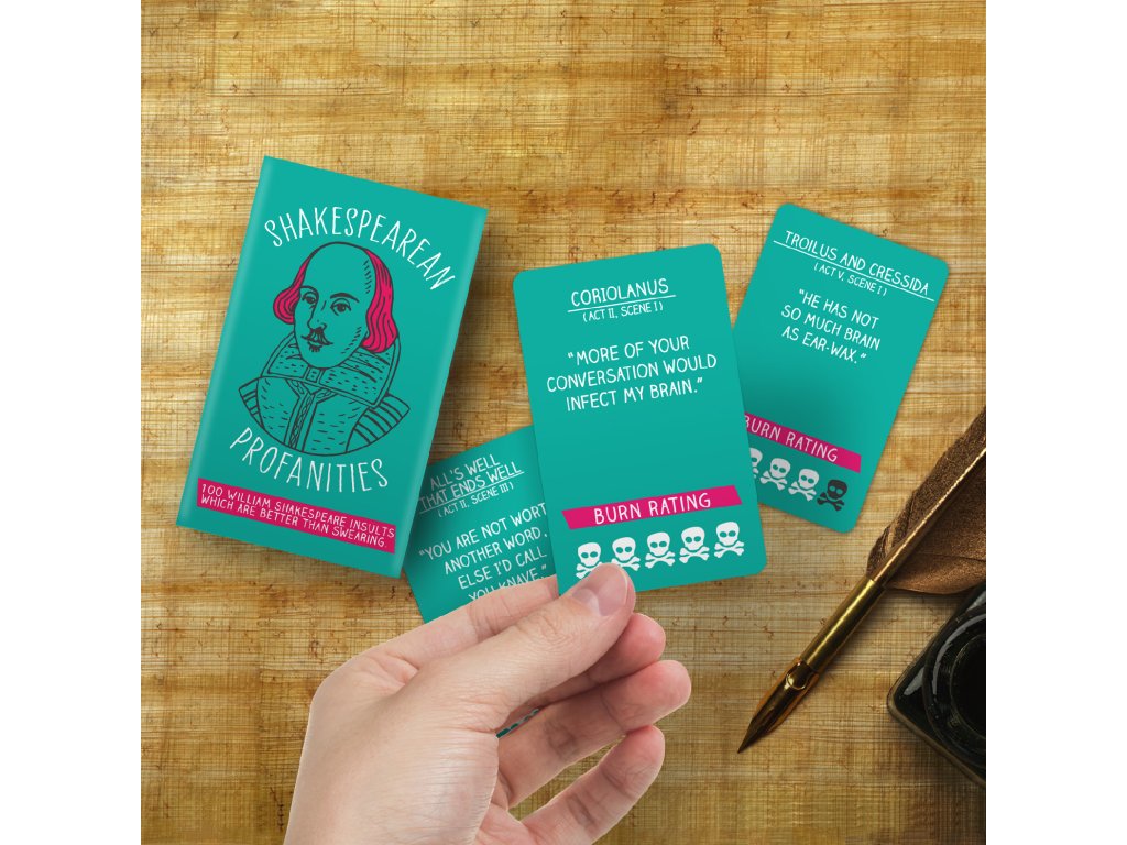 When modern day insults just aren’t enough. Want to insult your friends while keeping your class? These 100 cards will expand your vocabulary and teach you some of the best insults from Shakespearean times. 15x9x3.5cmDoplňkové parametry