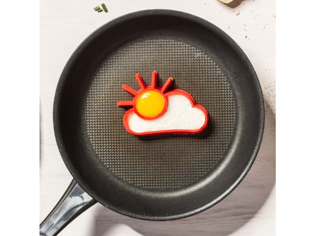 Překvapte své děti skvělou snídaní v podobě vaječných sluníček a mráčků. Silikonová forma na vajíčka ve tvaru slunce a mraku vytvoří na pánvi z rozklepnutého vejce veselé mráčky, které můžete ozdobit zeleninou a podávat dětem jako snídani. Děti si Vaše snídaně rychle oblíbí a budou se na ně těšit. Volská oka z kvalitní silikonové formy ve tvaru slunce a mraku se stanou populární v celé rodině. Silikonové formy na vajíčka - slunce a mrak jsou originální dárek do kuchyně.