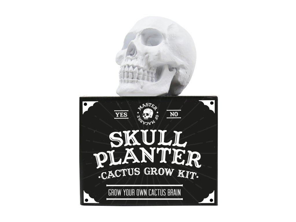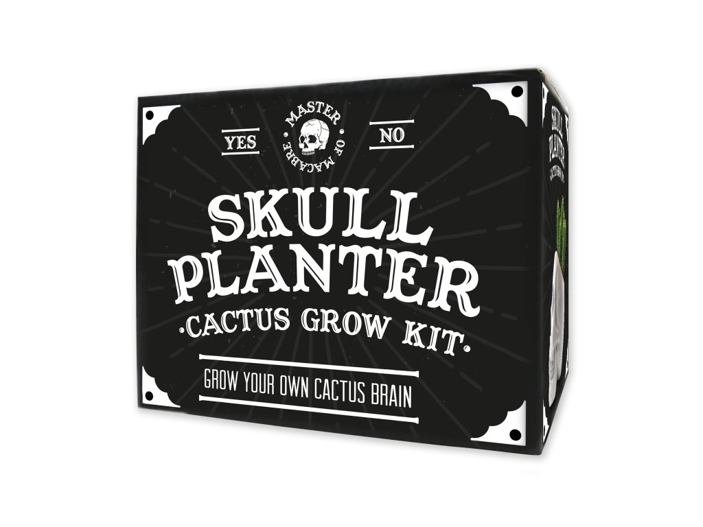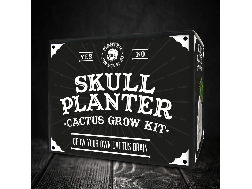 _ Description: The perfect present for fans of the macabre lifestyle, this skull planter cactus grow kit will send chills down the spine of anyone who lays their eyes on it! This skull planter kit includes everything you need to grow a spiky cactus brain! Dims: 20x16x14cm Product Info: 1x skull planter, 1x packet of assorted cactus seeds, 1x Coir disk, 1x coconut husk plant pot, 1x drainage tray and an instruction booklet.Doplňkové parametry