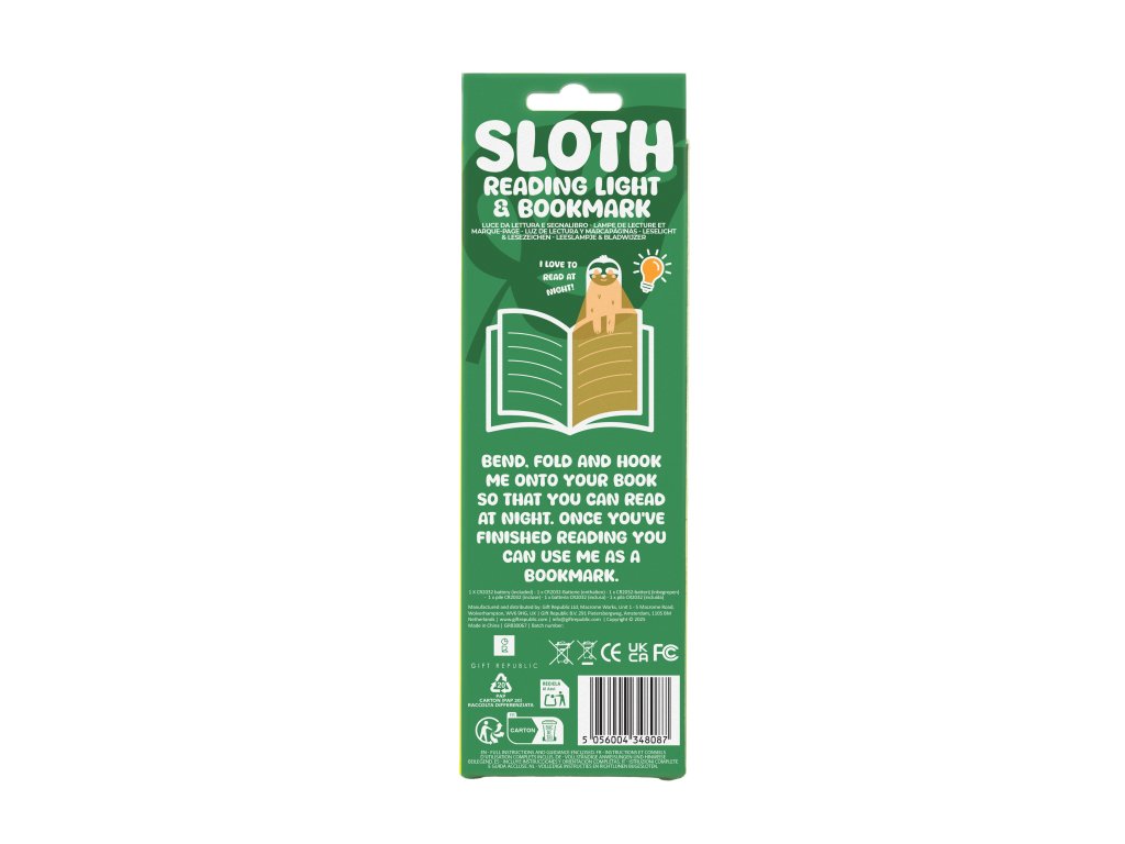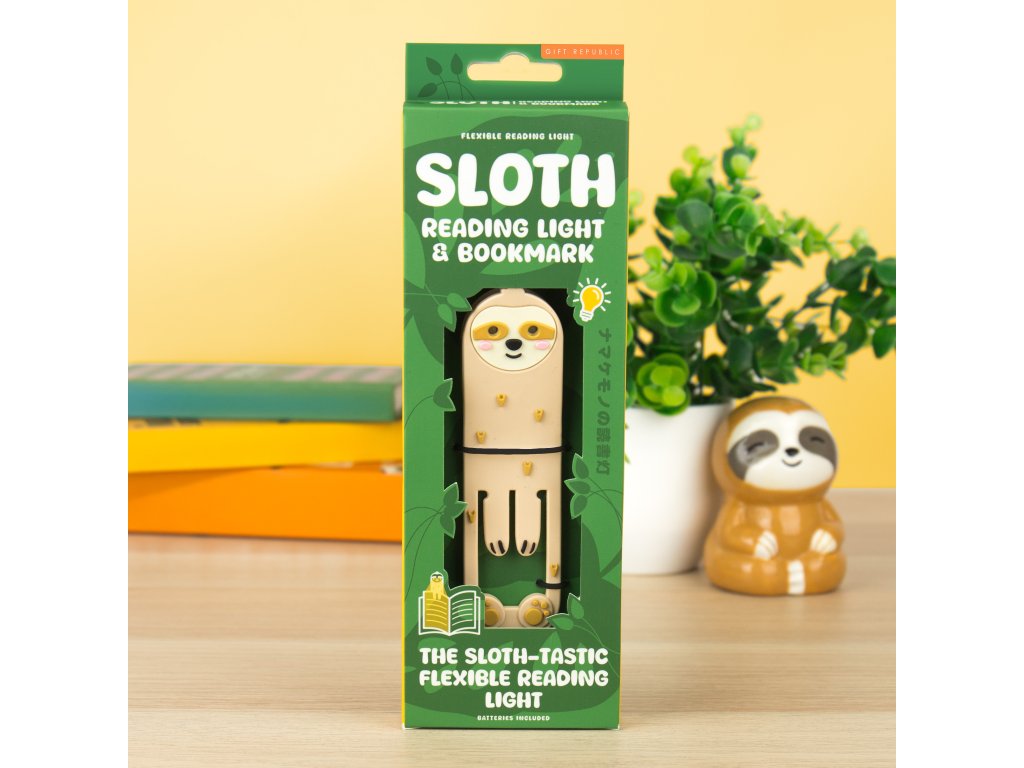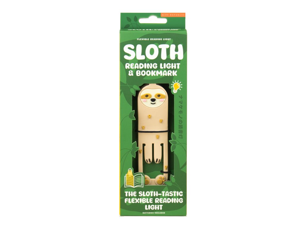 SLOTH READING LIGHT AND BOOKMARK Description: Take it slow with our adorable Sloth Reading Light! Ideal for young readers, this chilled-out companion clips onto your book and lights up every page for relaxed night time reading. Dims: 7.3x21.5x2.2cm Product Info: Flexible reading light/bookmark – requires 1 X CR2032 battery (included)Doplňkové parametry
