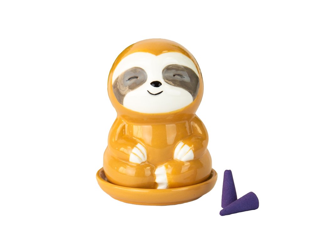 _ Description: Meet your ultimate relaxation buddy! This sloth incense burner helps you unwind with its calming scents and gentle, slow-moving style. Light the incense, take a deep breath, and let the soothing aroma guide you to pure tranquillity. Dims: 12 x 8.5 x 8.5 cm Product Info: Includes 1 ceramic sloth, 1 ceramic plate and 4 lavender scented incense cones.Doplňkové parametry