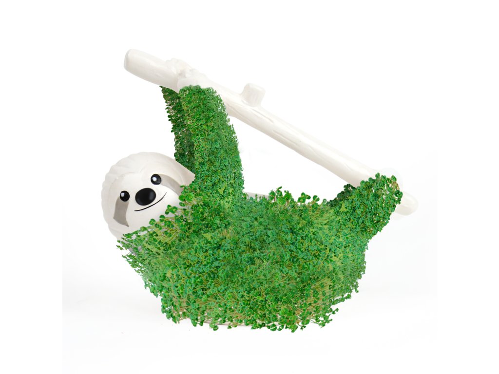 Sloth Chia Pet Description: Grow your own fluffy sloth right from your windowsill. Rub the chia seeds onto the planter, water, chill out and watch him grow. What a cute face to welcome you home! Dims: 20x17.5x14 Product Info: Ceramic planter with seeds. Polystyrene insertDoplňkové parametry