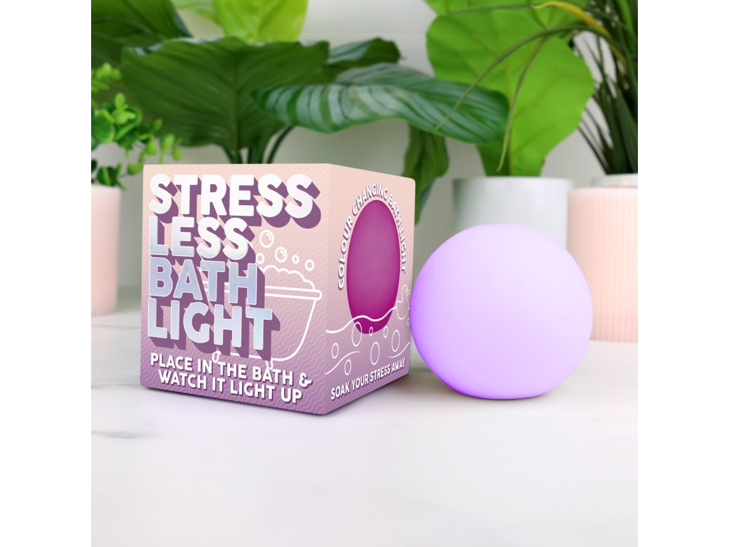 Stress Less Bath Light Description: Do you know someone who struggles to turn off and relax? Now you can help them with the Stress Less Bath Light. All they have to do is put the light into the bath, sit back and watch it project an array of mindful colours. Dims: 8.5x8.5x8.5cm Product Info: 6x Light colour changing sequenceDoplňkové parametry