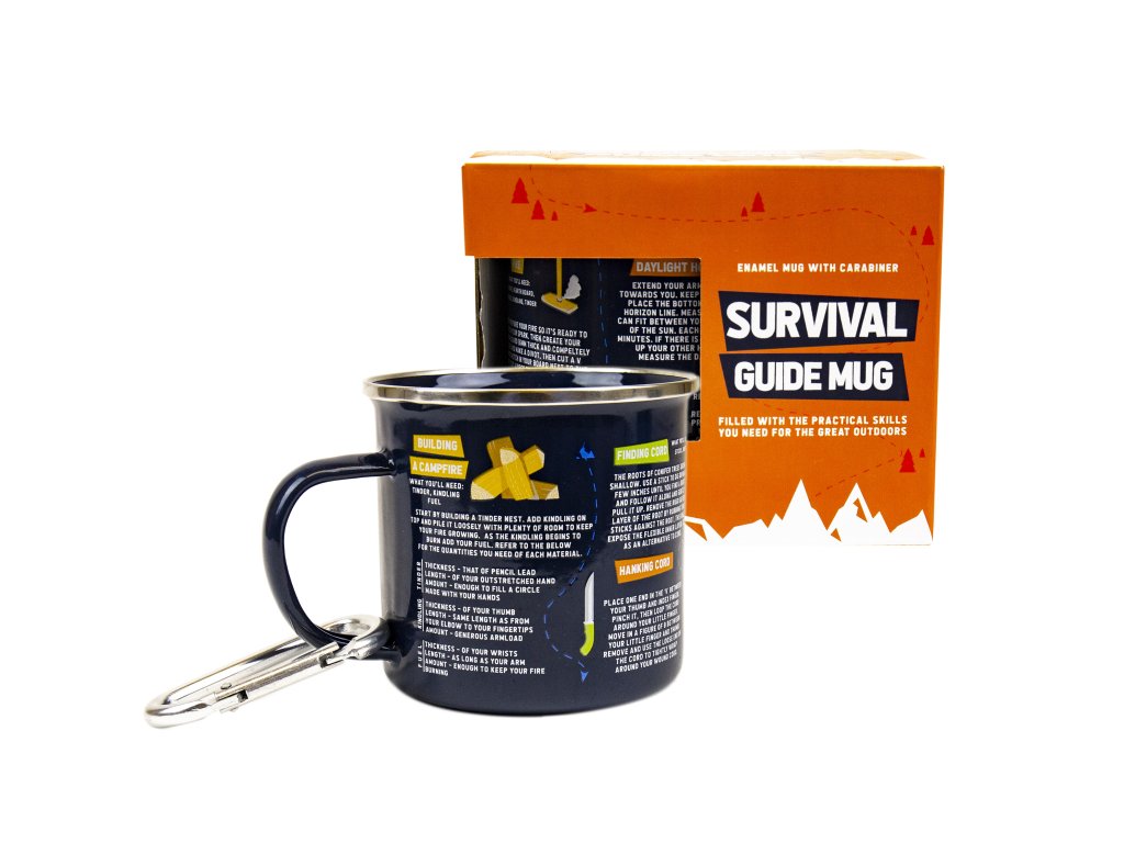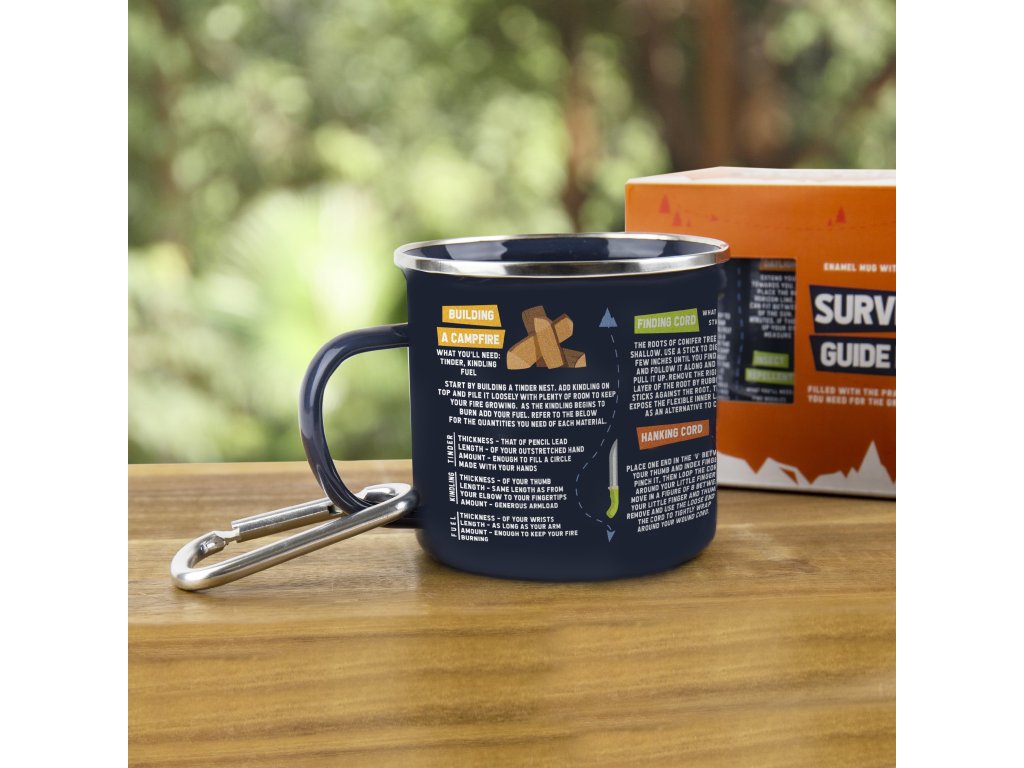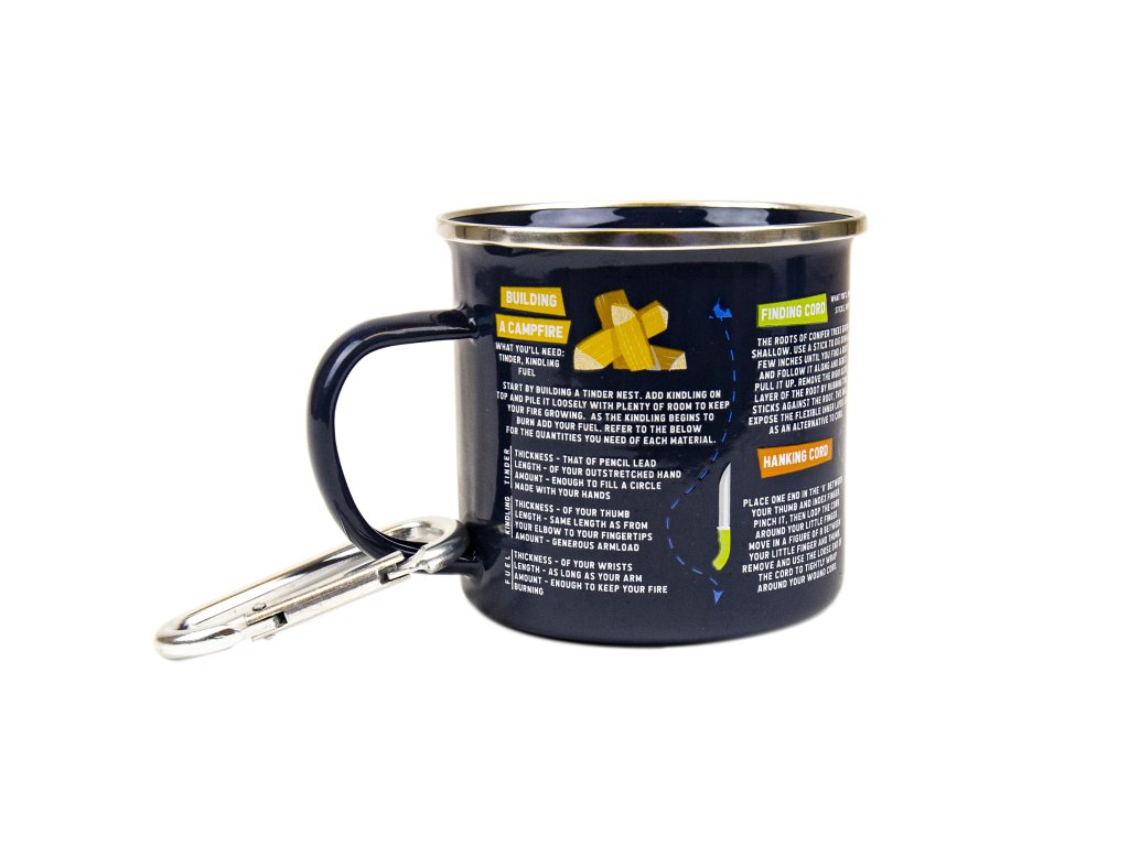 _ Description: This mug is the perfect travel companion. Covered with every tip and trick you’ll need to survive the great outdoors. perfect for any outdoor adventurers! Packaging: Carboard box. Dims: 12x10x10cm Product Info: 500ml / 17oz. Comes with carabiner.Doplňkové parametry