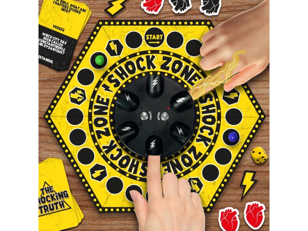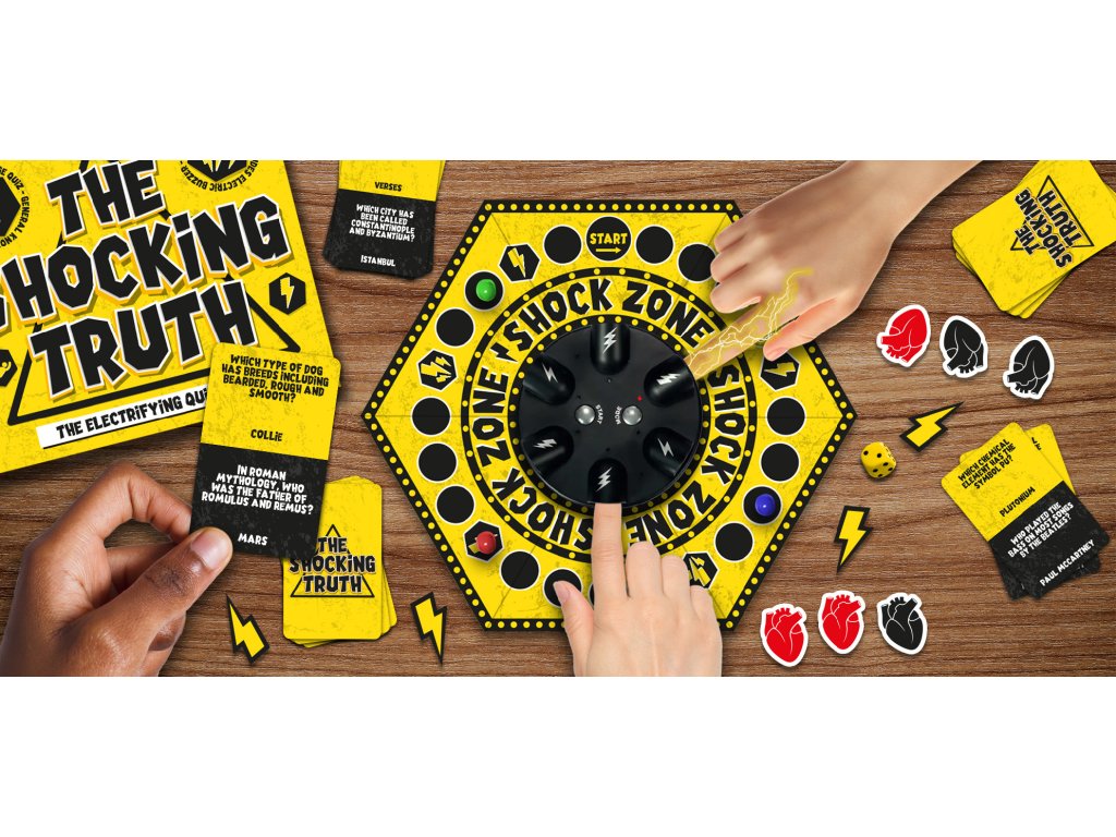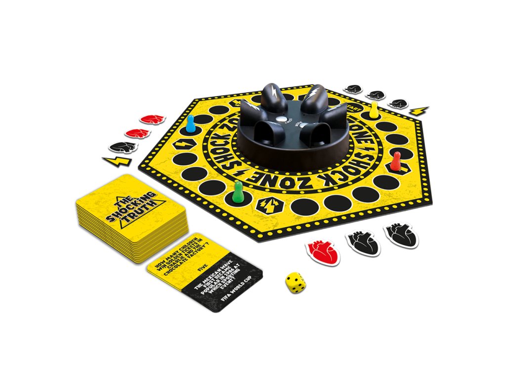 The Shocking Truth Description: This electrifying general knowledge quiz game puts players against each other in the ultimate battle of brains and nerves. Correct answers keep you safe, but incorrect answers could give you the shock of your life! Dims: 24x27x8.5cm Product Info: 400x questions, 1x electric shock buzzer, 6x game pieces, 1x dice, 20x life tokens, 8x shock tokens and an instruction bookletDoplňkové parametry