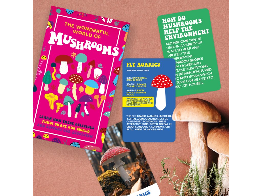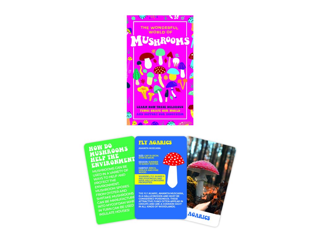 The wonderful world of mushrooms Learn about the role mushrooms play in the world around us. These fungi do more for the environment then you could ever imagine and best of all they also taste great! Dims: 15x9x3.5cm Product Info: 100 CardsDoplňkové parametry