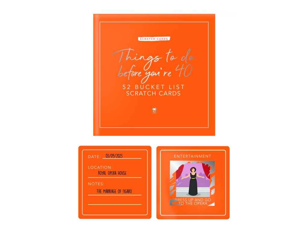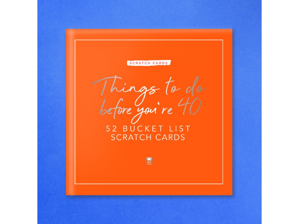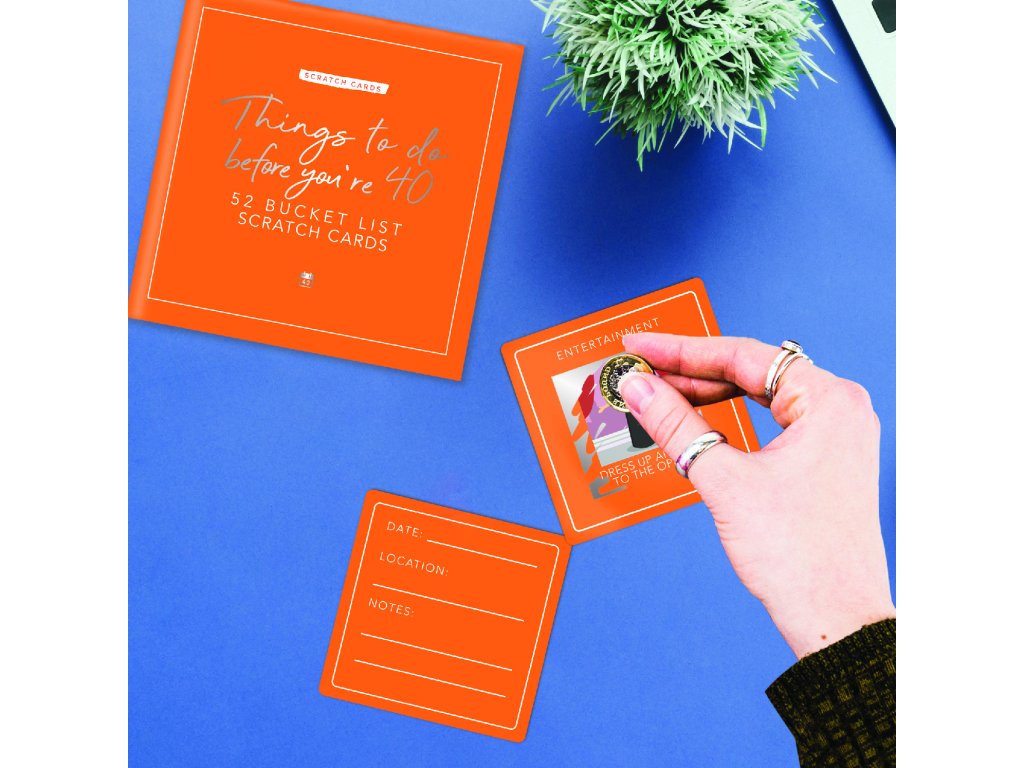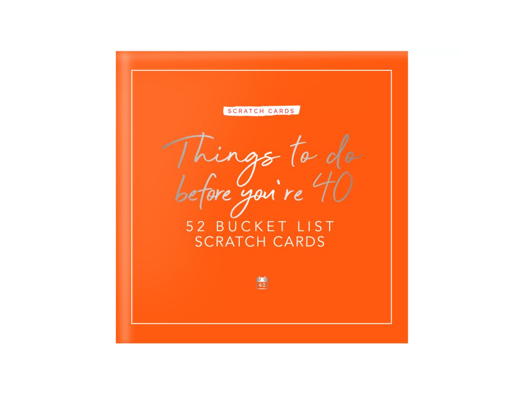 Things to do before your 40 – scratch cards Are you approaching the big 4-0? This card pack features 52 activities for you to discover. Scratch off the panel on each card to reveal the hidden activity underneath. The activities are categorised allowing you to get an idea of what you will be completing each week. Personalise the cards by writing details of your activity. You’ll make memories you’ll never forget. Dims: 11.5x11.5x3.5cm Packaging: Chipboard BoxDoplňkové parametry