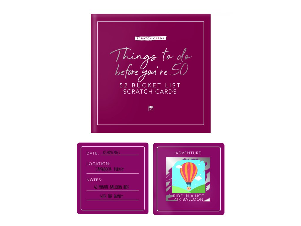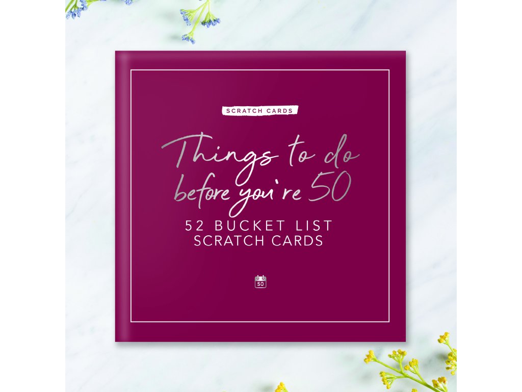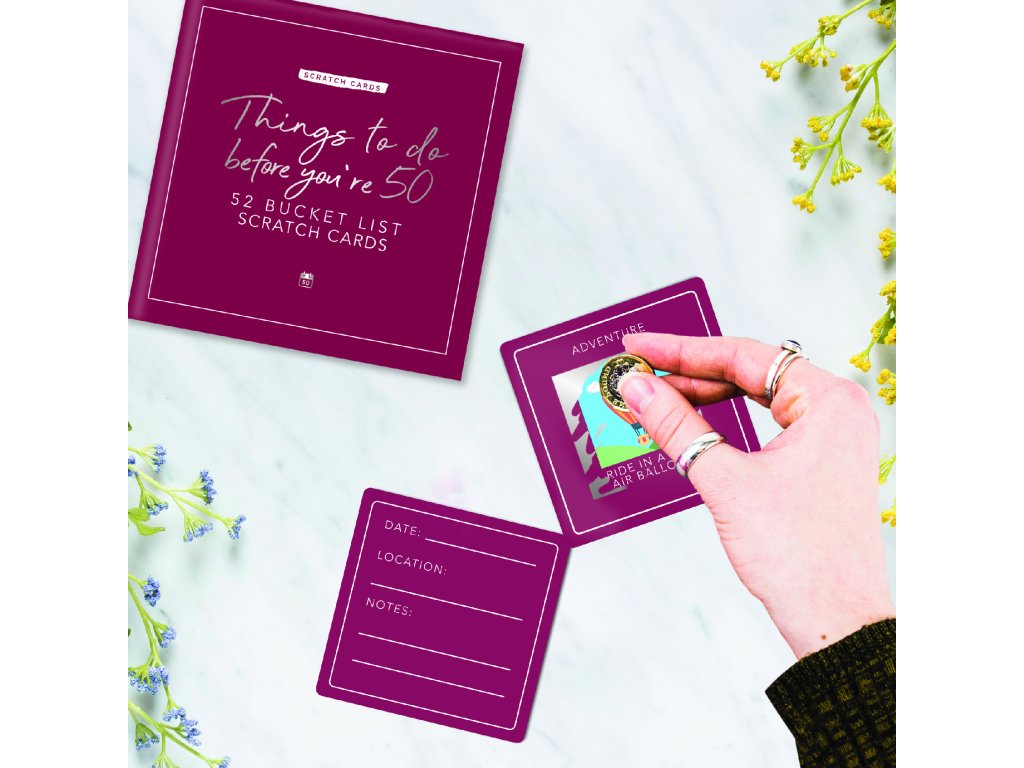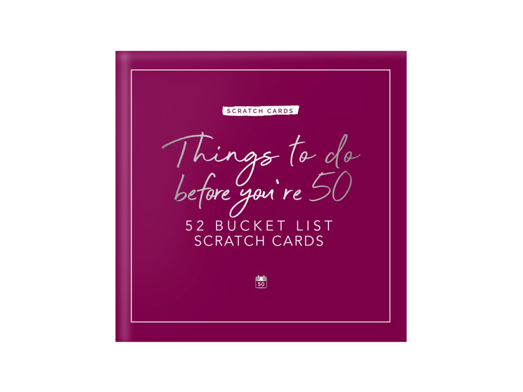 Things to do before your 50 – scratch cards Are you approaching the big 5-0? This card pack features 52 activities for you to discover. Scratch off the panel on each card to reveal the hidden activity underneath. The activities are categorised allowing you to get an idea of what you will be completing each week. Personalise the cards by writing details of your activity. You’ll make memories you’ll never forget. Dims: 11.5x11.5x3.5cm Packaging: Chipboard BoxDoplňkové parametry
