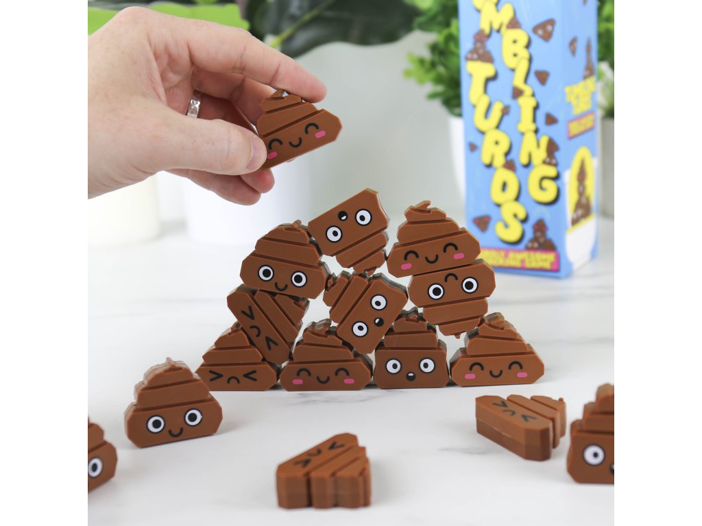 Tumbling Turds Description: You will require a steady hand for our turdly awesome stacking game. Pile them high but take care, one wrong move and those turds will come crashing down. Dims: 21x7x7cm Product Info: includes 16 stacking turds. Extra info: This box contains all you need to have stacks of fun! Your mission is to stack those smelly turds without letting them tumble. Carefully plop the turds on top of each other, building a stinky tower of triumph. To start the game, divide the turds evenly between the players. The player that pooped last should start the game by putting the first turd down. There should be no more than five turds at the bottom of the pile at any one time. If you’d like to make the game more difficult, reduce this to four turds. Turds must be facing outwards and cannot be stacked face down. turds must always be touching when placed on the pile. If you cause any turds to tumble, you’ll have to scoop up those poops and they will become your game pieces. The first player to stack all their turds will be crowned the turdly awesome winner!Doplňkové parametry