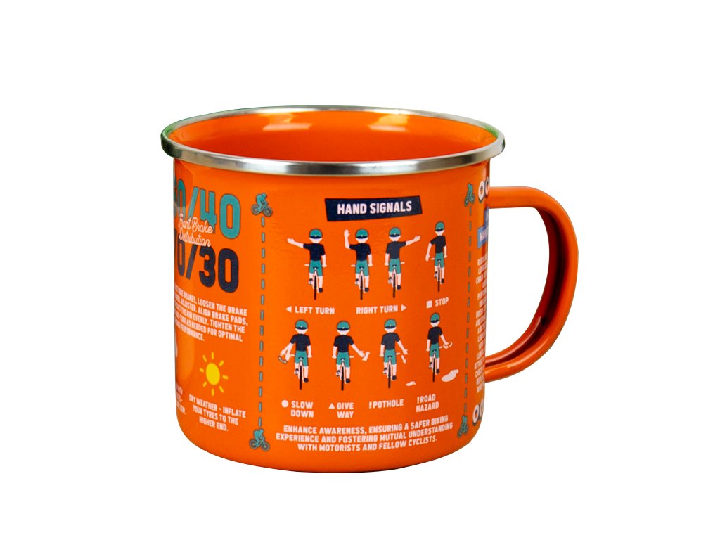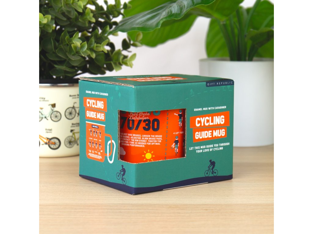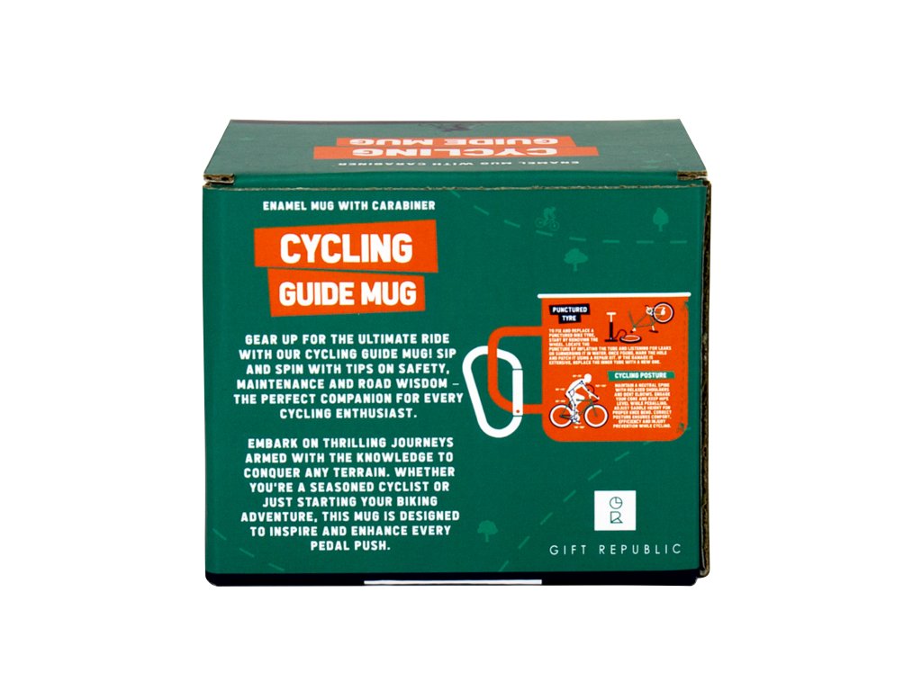 Cycling Guide Mug Description: Gear up for the ultimate ride with our Cycling Guide Mug! Sip and spin with tips on safety, maintenance and road wisdom – the perfect companion for every cycling enthusiast. DIMENSIONS: 12x10x10cm INFO: 500ml / 17oz. COMES WITH CARABINERDoplňkové parametry
