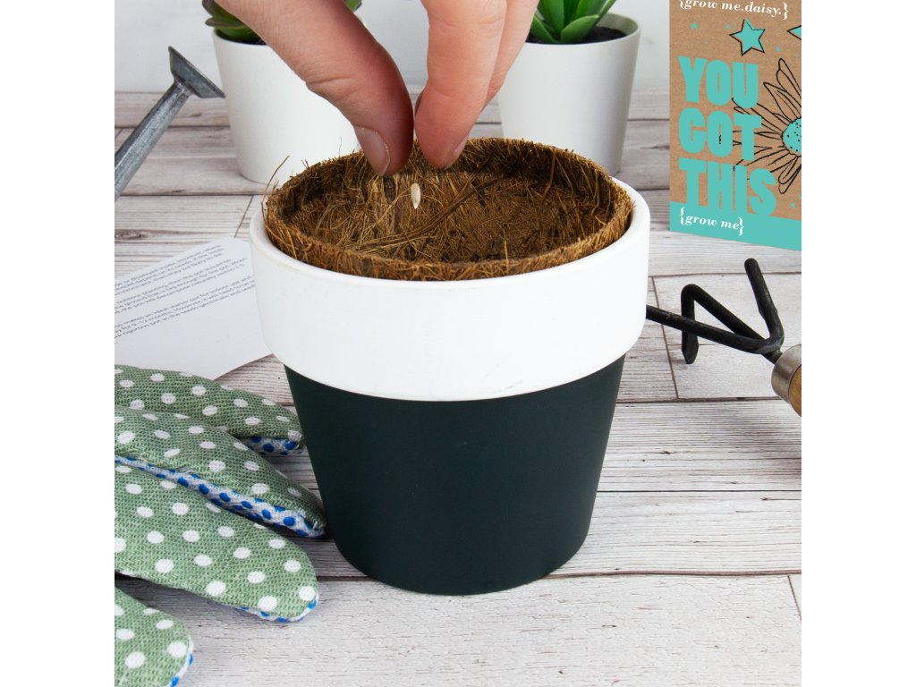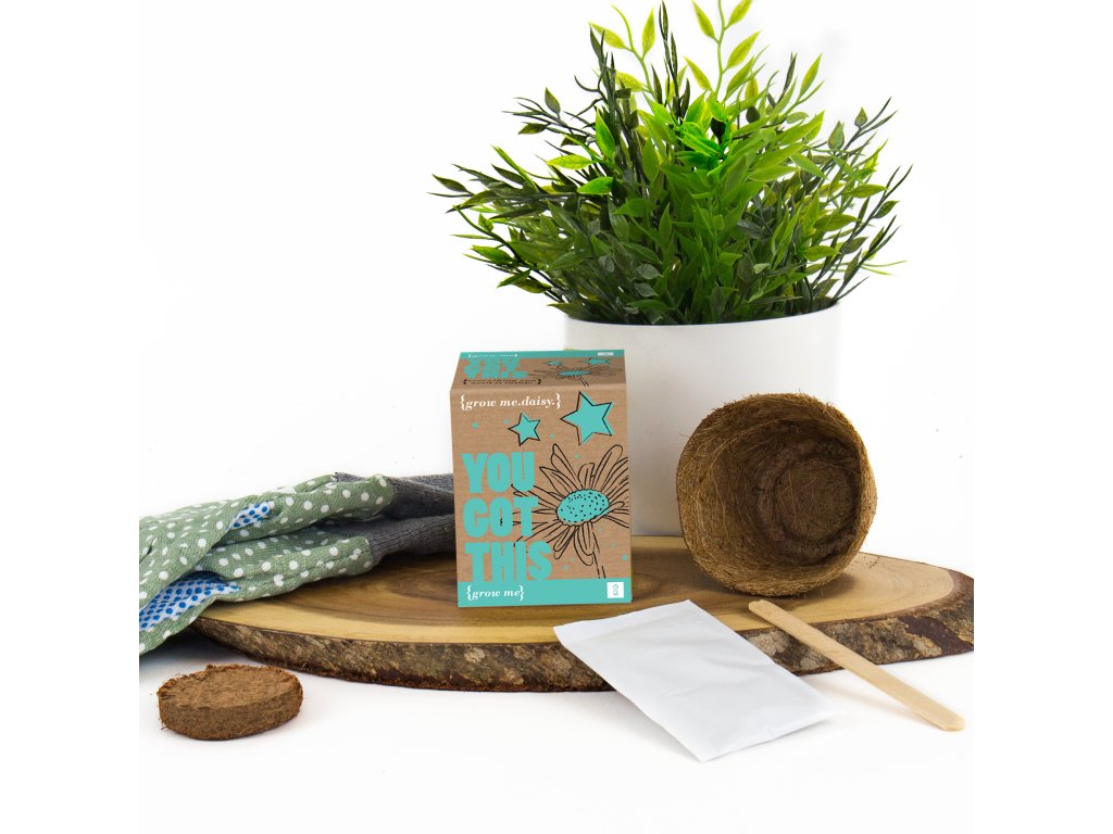 You Got This – Grow Me Description: Give someone a much needed boost with the You Got This Grow Me! It’s the perfect feel good gift and will empower you to take on any challenge. Dims: 9x8.5x7cm Product Info: 1x packet of chamomile seeds, 1x coconut husk compost disc, 1x coconut husk plant pot and 1x wooden plant markerDoplňkové parametry