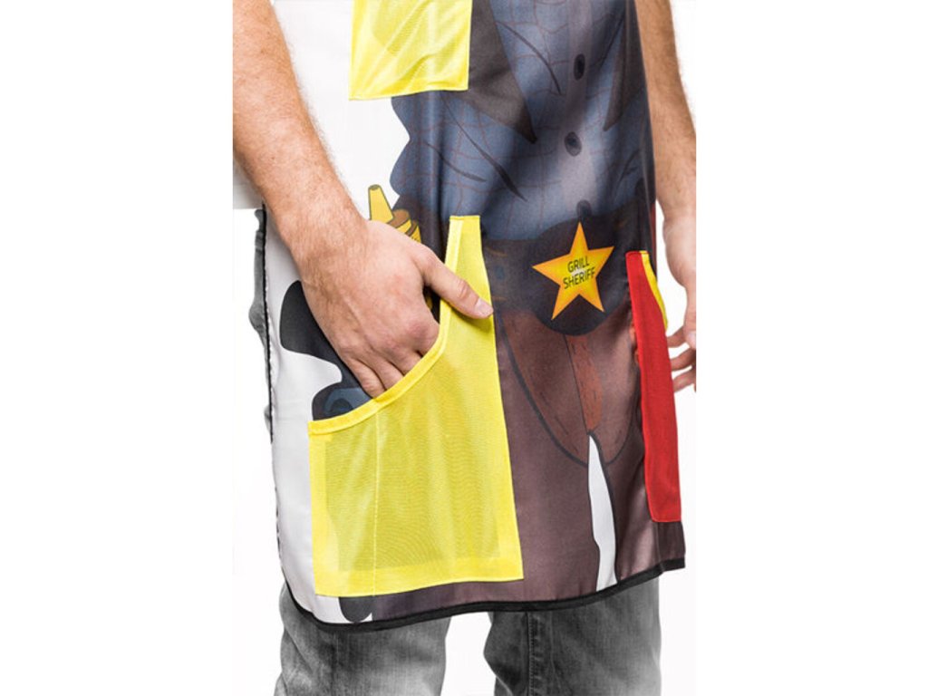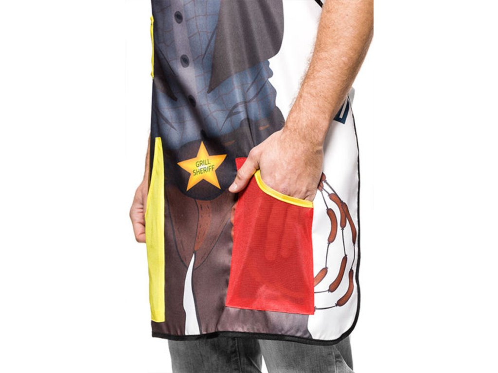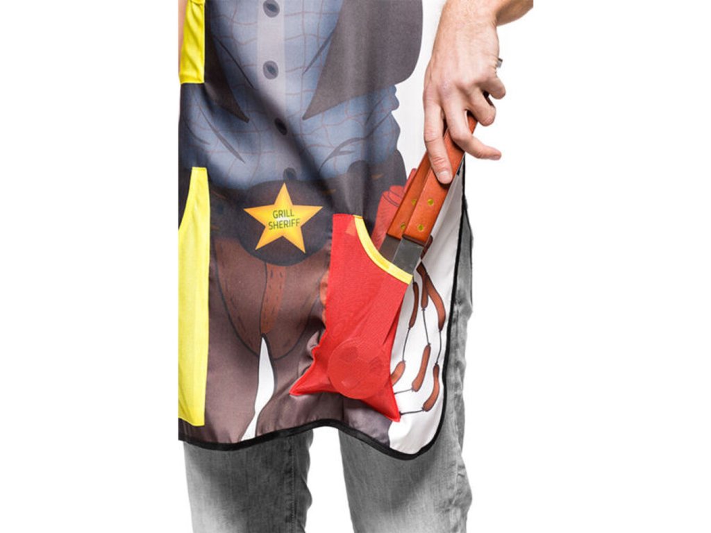 Víte, jak se grilovalo na divokém západě? Stačí si nasadit tuto grilovací zástěru šerif a rázem se proměníte v pravého šerifa z westernu, jakým jste si přáli být. Grilujte jako skutečný pán zákona. V této zástěře bude každý muž neodolatelný, chybí už jen kolt u pasu. Zástěra má čtyři praktické kapsy, do kterých si můžete vložit svou pistoli.... vlastně, spíše grilovací potřeby, například, kečup, hořčici, zapalovač, zkrátka vše, co ke grilování patří. Poté můžete hrdinsky odložit své grilovací zbraně a vychutnat si svůj westernový steak. Zástěra šerif je originální dárek pro muže.