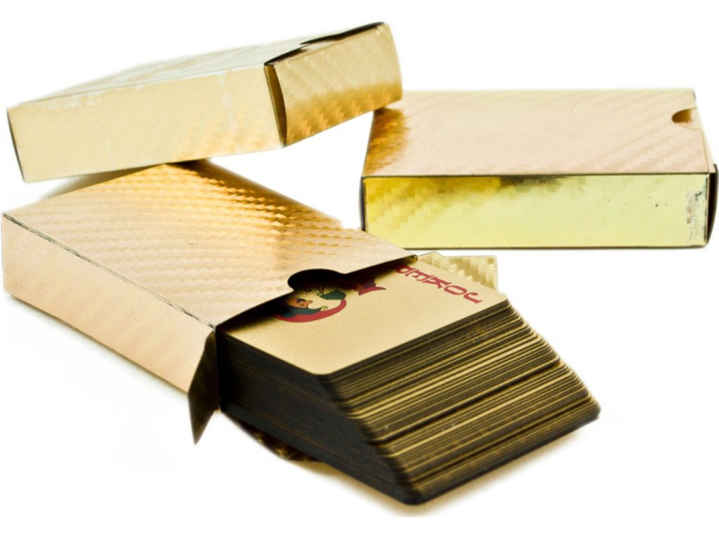 Zahrajte si s přáteli žolíky jako skuteční aristokraté. Tyto zlaté karty jsou přepychovou záležitostí a zahrát si s nimi karetní hru je opravdu zlatou zábavou. Zlaté karty jsou skutečně celé ze zlata. Překvapte své přátele a trochu se vytáhněte tímto luxusem. S těmito kartami se Vám bude jistě dobře hrát a budete vyhrávat. Zlaté karty jsou originální dárek pro každého, kdo ne jen rád hraje karty, ale kdo se chce alespoň na chvíli cítit jako boháč. Tento jedinečný dárek udělá radost například Vašemu kamarádovi nebo rodičům.